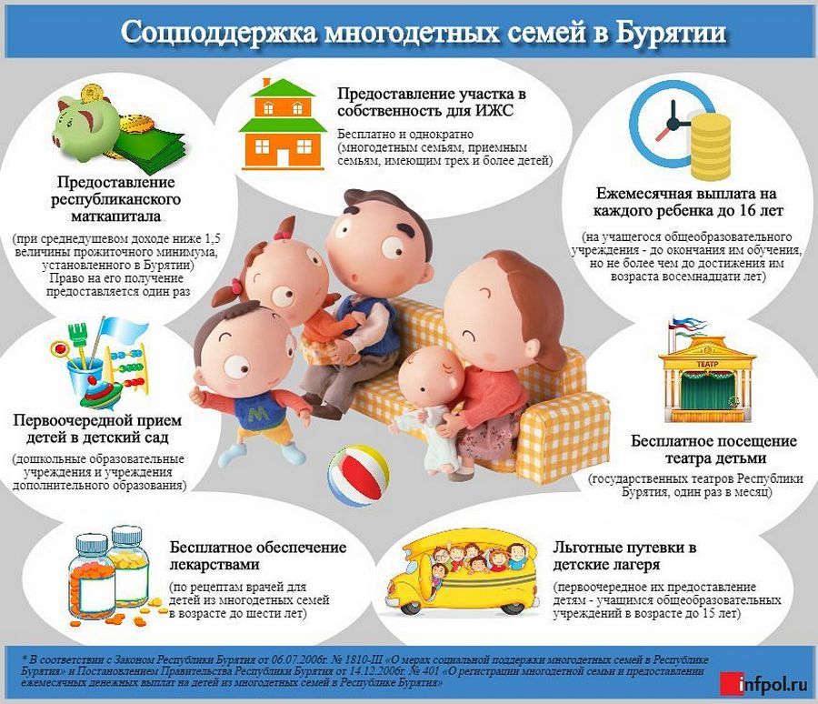 В Бурятии для многодетных семей установлены следующие меры социальной поддержки.