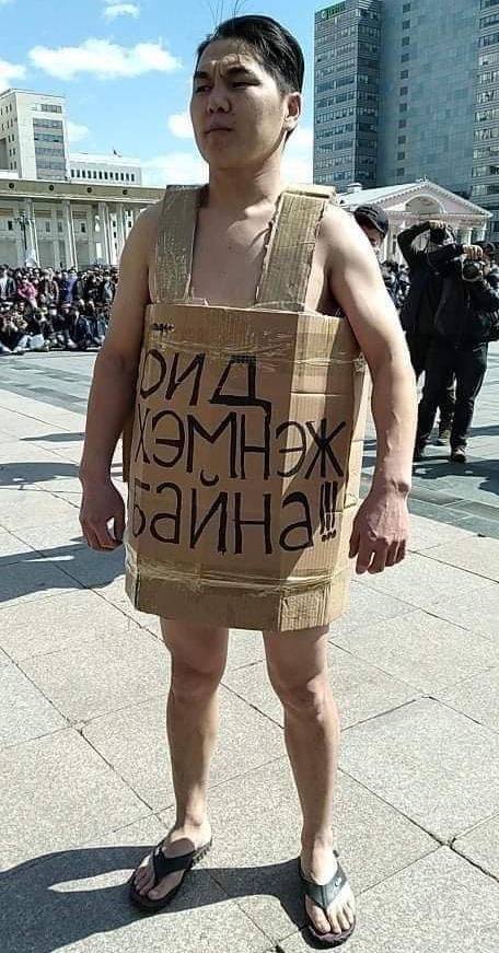 Форум начался с обращения президента и выступления премьер-министра в 9 часов утра, а протестная акция стартовала в 10 часов. Впервые монгольская молодежь так организованно и масштабно вышла на акции протеста. Но лозунги были не за отставку правительства, а с призывами обратить внимание на сложившуюся после пандемии тяжелую экономическую ситуацию и рост цен. Дело в том, что накануне выстроились огромные очереди из молодежи, желающей уехать на заработки в Южную Корею. И в этих условиях призыв спикера парламента Занданшатаара затянуть пояса и сократить издержки, вызвал шквал возмущения. Появились саркастические призывы писать слова без гласных, мол сократим и их. Наглядным подтверждением обесценивания денег стал плакат из наклеенных купюр, которые предлагали использовать вместо обоев. Молодежь выступила против снижения уровня жизни из-за повышения цен. Требовала справедливого суда над коррупционерами и взяточниками и создания условия для спокойной жизни в родной стране. Причем многие лозунги были написаны с творческой изюминкой.