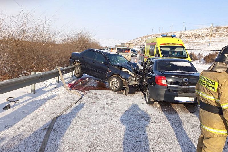 В понедельник, 13 января, около полудня в селе Саратовка Тарбагатайского района произошло тройное ДТП.