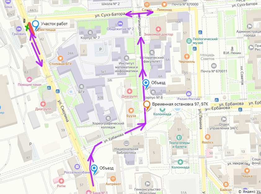 В Улан-Удэ из-за обновления коммунальных сетей с 27 января перекроют участок дороги по улице Смолина – перед поворотом на Сухэ-Батора. Работы продлятся ориентировочно до конца марта.
