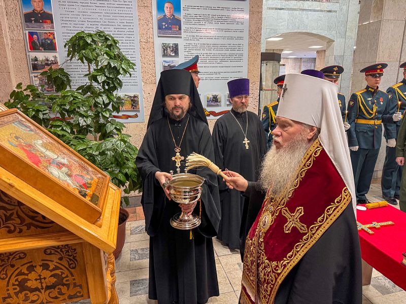 Затем генерал-майор провел для владыки экскурсию по музею объединения. Священнослужители окропили святой водой все служебные помещения штаба.