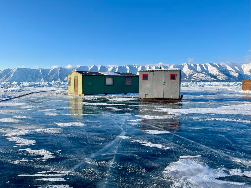 Вдоволь насладившись коньками, мы побежали отогреваться в машину. А она понесла нас к берегу, где группу ждала изюминка всего тура. Прямо на льду стояли несколько строений, как позже выяснилось, это была баня и столовая, а рядом огромный чан. «Ледовый лагерь» организовала местная семья. Чтобы показать гостям их края, гостеприимство Байкала и подарить незабываемые эмоции.