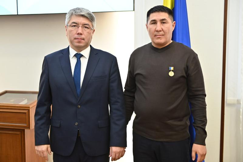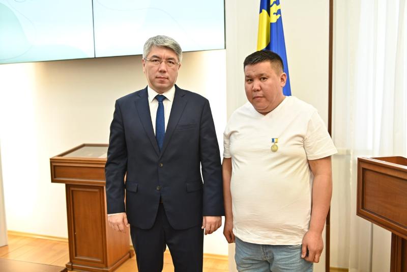- Вернувшиеся сегодня волонтеры выполняли свою миссию в прифронтовой зоне, когда их автомобиль наехал на мину. За мужество и самоотверженность, проявленные при выполнении опасных задач и поддержке бойцов СВО, Алексею Будаеву и Белигто Галданову была вручена государственная награда – медаль Алдара Цыденжапова, - поделился глава.