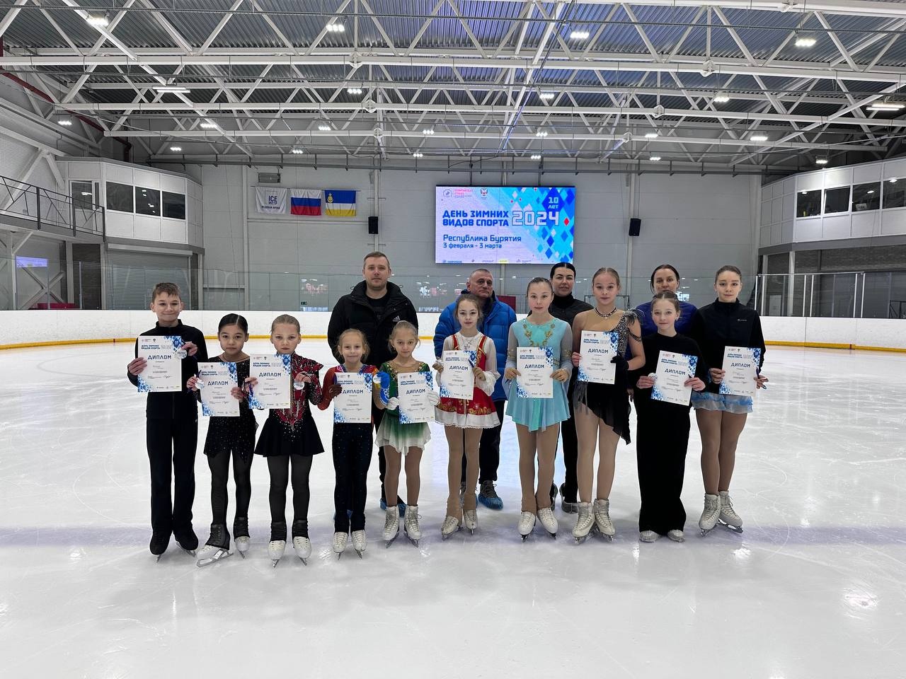 Фигуристки часто выезжают на соревнования и показывают хорошие результаты. Их замечают и отмечают. Две девочки прошли отбор и уехали в Москву. Одна сейчас занимается в Академии Плющенко, другая - у Этери Тутберидзе. Приезжали в Бурятию с мастер-классами ведущие фигуристы страны, такие как Алексей Тихонов и Мария Петрова. Сами спортсмены выезжают на чемпионаты России и гран-при пока в качестве зрителей, чтобы посмотреть на титулованных спортсменов страны, вдохновиться, мотивироваться на дальнейшие успехи. Воробьева Полина, Алексеева Елена, Гркигян Карина, Петрушенко Злата, Боцок София и Богомазова Наталья имеют 1 спортивный разряд, Никитина Мария - 2 спортивный разряд и Грач Мия - 3 спортивный разряд.