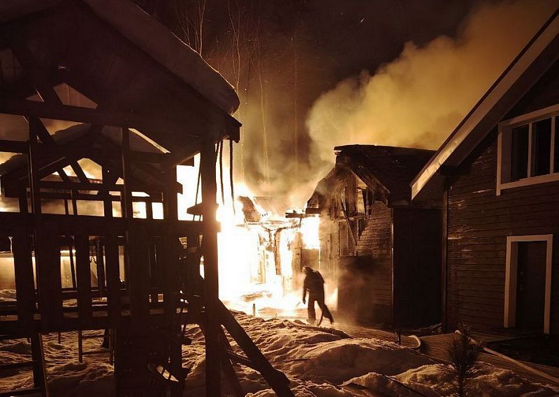 Накануне вечером в селе Максимиха Баргузинского района Бурятии загорелся эко-отель «Байкальское Шале»