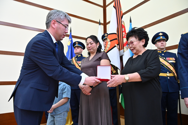 Глава Бурятии Алексей Цыденов вручил награду, присвоенную посмертно, семье Героя России Балте Цыренжапова.