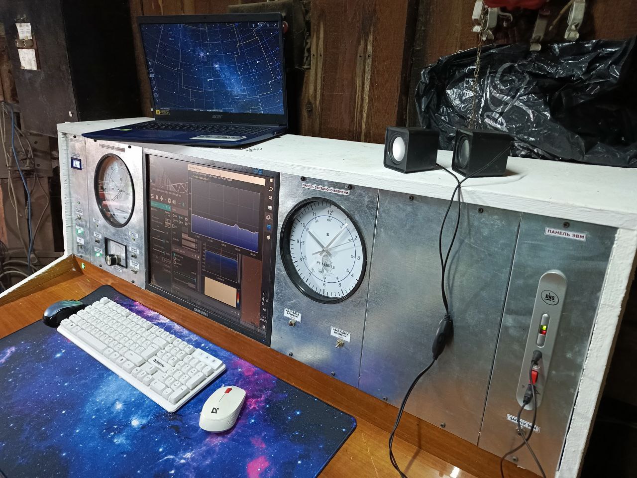 – Больше всего времени ушло именно на слесарные работы, ведь хочется, чтобы это всё выглядело более-менее хорошо и достаточно функционально и удобно было. Здесь как ком нарастает огромное количество мелких работ: создание панелей, пайка всяческих устройств, корпусов, волноводных систем, облучателя, разных кронштейнов, бесконечных приводов и так далее. Покраска этих деталей вообще очень много ресурсов тратит. То есть основное время потрачено не на принципиальные какие-то решения и разработку, а именно на слесарную работу. Можно, конечно, это сделать гораздо проще, и, соответственно, время будет затрачено меньше. Но результат будет такой не очень удовлетворяющий, – отметил Сергей.