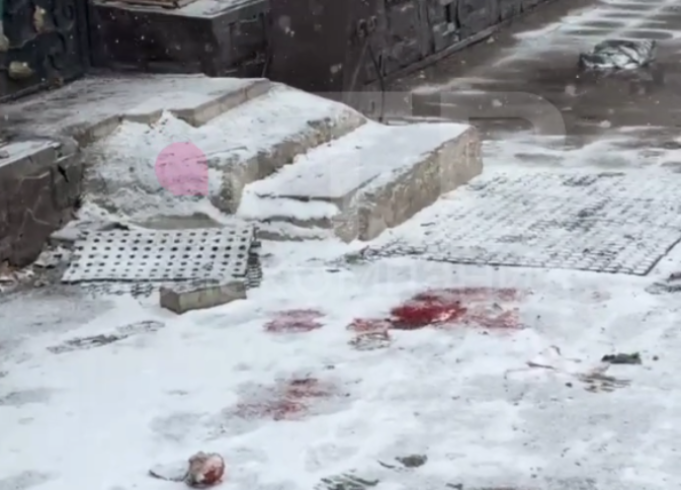 Жуткое видео с места убийства опубликали в телеграм-канале телеканала АТВ. Рядом со входом в заведение земля залита кровью.