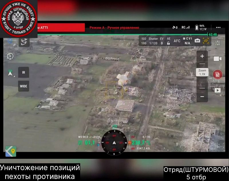 Уточняется, что группировка «Восток» продолжает разрушать оборону противника при помощи артиллерии и ударных БПЛА.