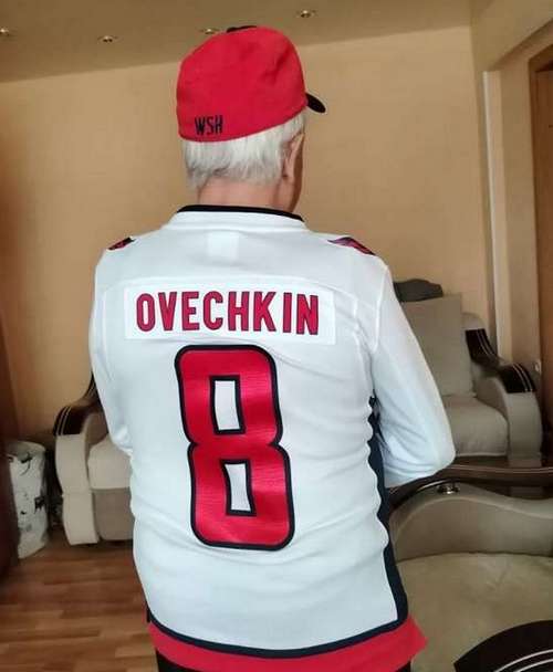 - И здесь вновь 82-летний Эдуард Кулибабин блеснул майкой «Кэпиталз», которая оказалась у него не случайно. Его дочь Оля проживает в Канаде и лично знакома с хоккеистом Александром Овечкиным, более того они дружат семьями, - поделился автор.