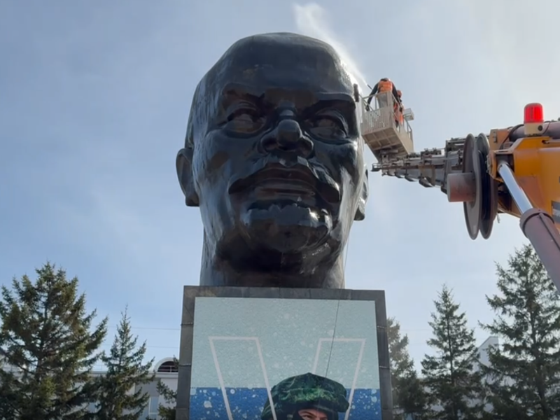Сегодня, 14 апреля, в столице Бурятии по уже сложившейся традиции решили помыть памятник Владимиру Ленину на площади Советов.