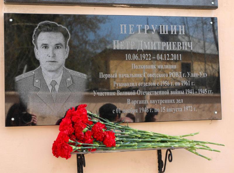 В преддверии Дня Победы в Великой Отечественной войне на территории городского управления полиции торжественно открыли доску памяти в честь первого начальника Советского РОВД Улан-Удэ полковника милиции Петра Петрушина.