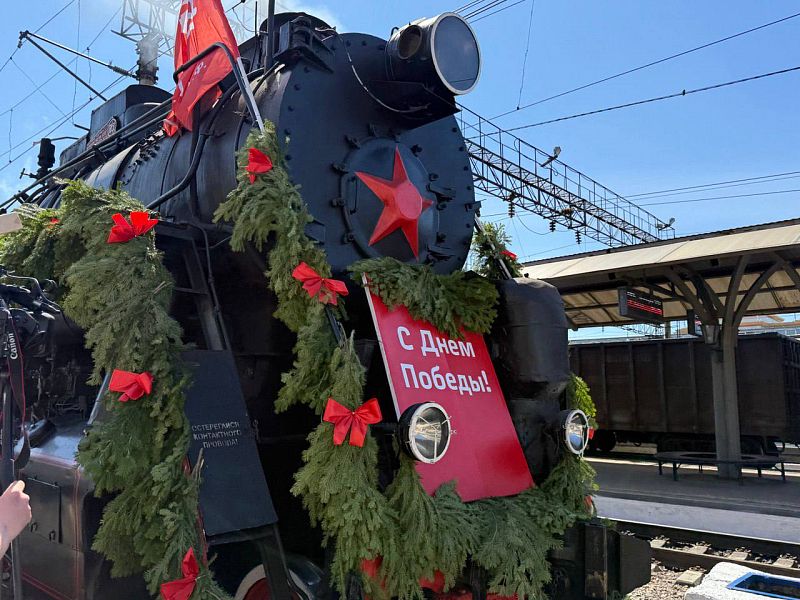 Сегодня, 8 мая, на железнодорожный вокзал Улан-Удэ прибыл «Поезд Победы» — подлинный исторический эшелон, посвящённый героям Великой Отечественной войны. Колонну возглавляет паровоз Л-620, более известный как «Лебедянка». Украшенный флагами, хвойными гирляндами и транспарантами, он протянул гудок в память о тех, кто приближал Победу в мае 1945 года.