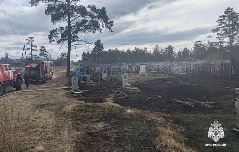Вчера днём, 10 мая, на телефон пожарной охраны поступило сообщение о загорании травы на кладбище в микрорайоне Горького.