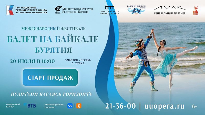 Международный фестиваль «Балет на Байкале. Бурятия» пройдёт при поддержке Президентского фонда культурных инициатив Правительства и Министерства культуры Бурятии. Генеральным партнёром выступит проект «АМАР», официальным партнёром - банк ВТБ.