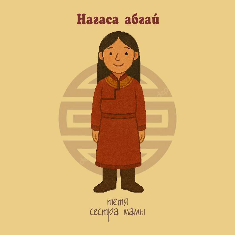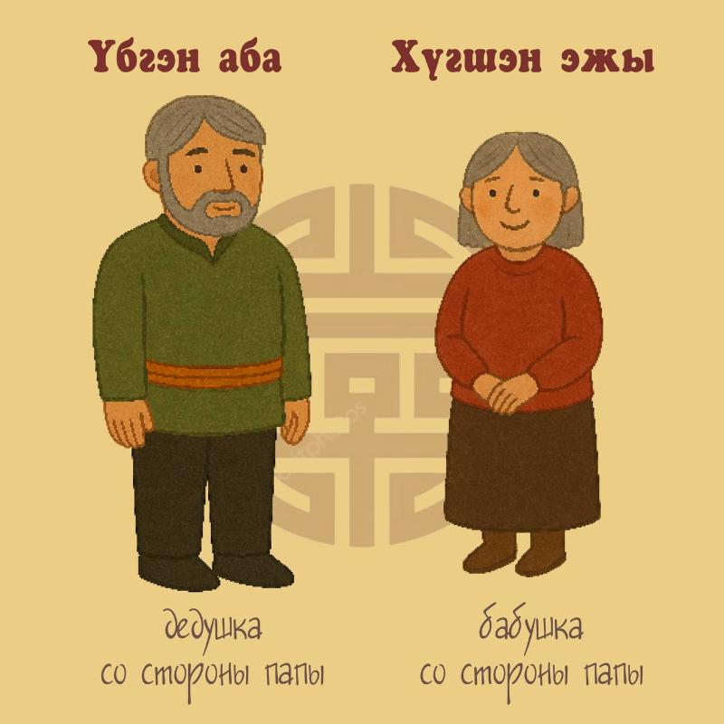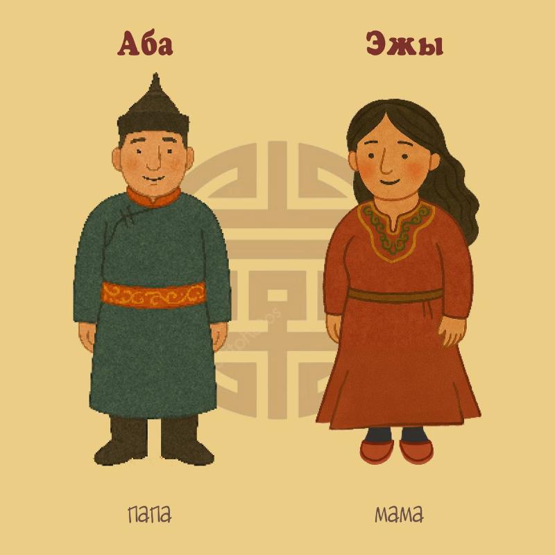 Давайте вместе вспомним, как на бурятском называют маму, папу, бабушку и дедушку.