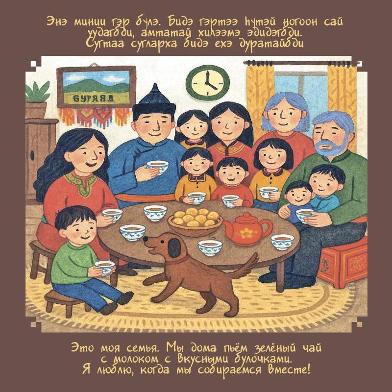 Мы возвращаем вашу любимую рубрику в новом формате. Теперь вместе с «Полисёнком» можно учить бурятский язык, вспоминать добрые традиции и выполнять интересные задания. Начали мы с главной темы в жизни каждого человека – семьи.