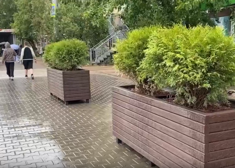 Сегодня на Элеваторе возле пешеходного перехода появились первые декоративные кашпо с туями. Кашпо сделаны из переработанного пластика и песка — прочные, долговечные и эстетичные. Внутри посажены вечнозелёные туи сорта «Литл Гиант», благодаря компактному размеру, густой кроне и устойчивости к холодам они идеально подходят для городского ландшафта.