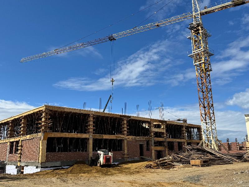 Сотрудники ООО «Строймонтаж» по блоку А приступили к кровельным работам. По остальным блокам продолжается кладка кирпичных стен и перегородок. Подрядная организация планирует зайти в тепловой контур до наступления низких температур и приступить к внутренней отделке.