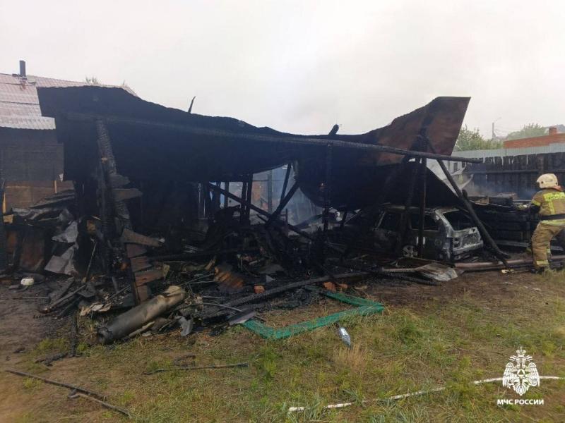 В результате пожара на территории одного домовладения уничтожен автомобиль, надворные постройки, повреждена стена дома и забор. На соседнем участке пламя повредило фасад двухквартирного дома, крышу, хозяйственную постройку и забор.