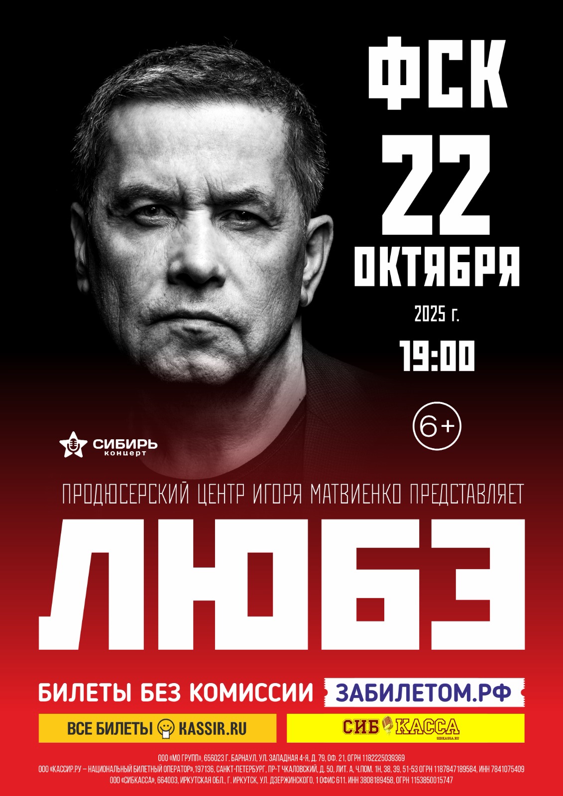 Начиная с 1989 года, песни в исполнении группы занимают лидирующие строчки российских хит-парадов и всегда звучат актуально. «Любэ» по праву считается одним из наиболее востребованных, любимых и признанных публикой коллективов. Можно сказать, что в песнях «Любэ» — история России, а точнее было бы говорить, что в этих песнях — сама Россия от Волги до Енисея. Ждём вас на большом концерте группы, где прозвучат ваши любимые хиты.