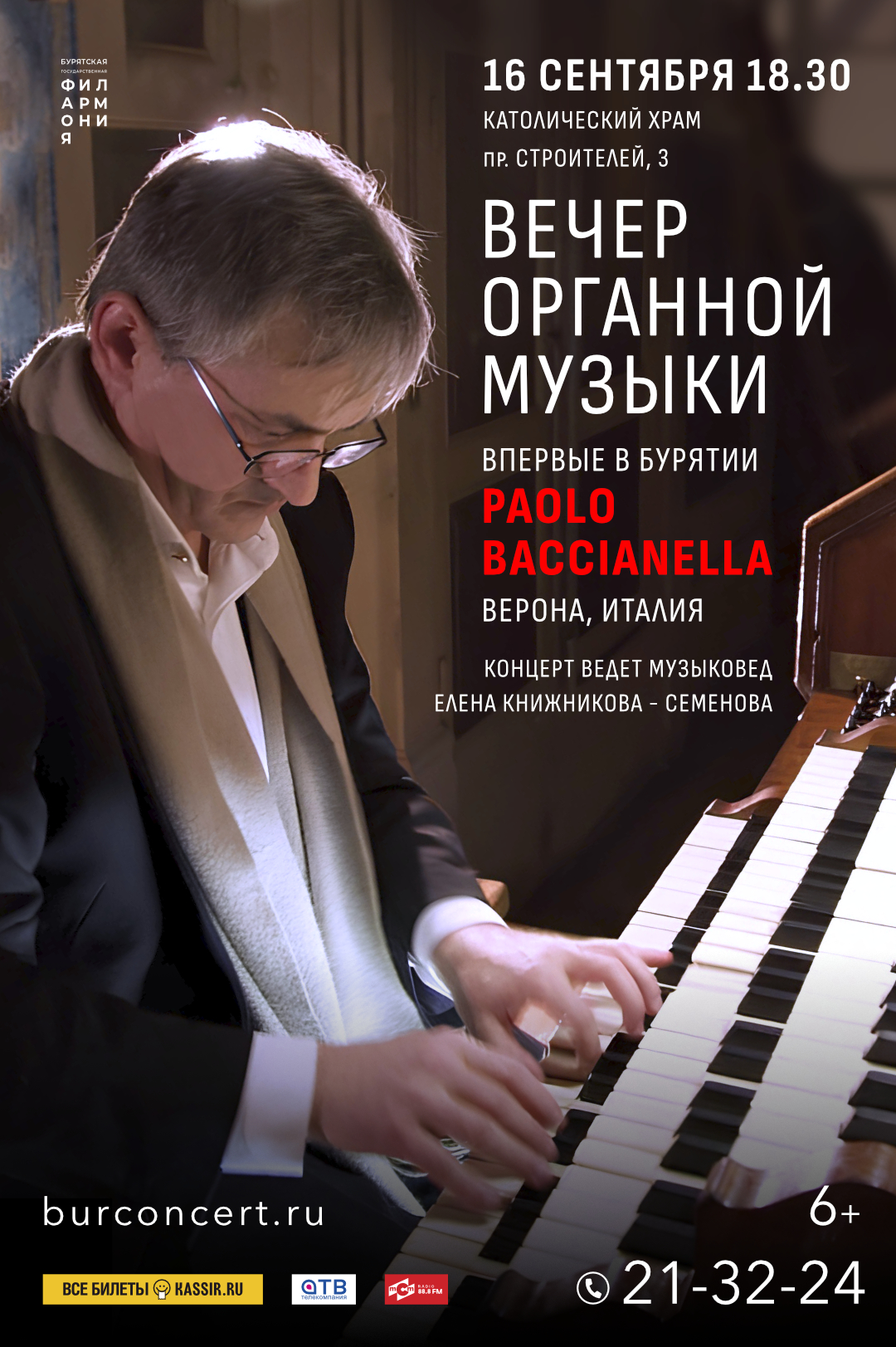 В Улан-Удэ концерт пройдёт 16 сентября в 18:30 в Католическом храме. Билеты на сайте: burconcert.ru.