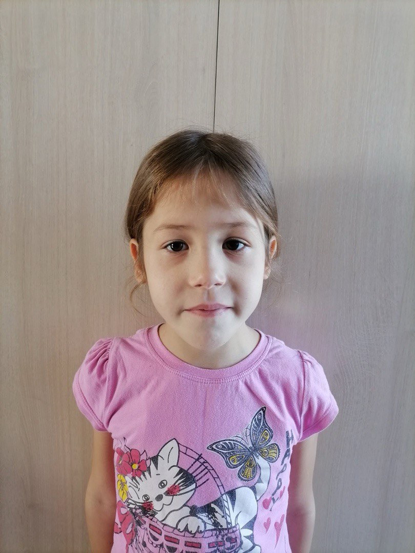 Елизавета, 8 лет. Активная, любознательная и веселая девочка. В свободное время любит раскрашивать картинки, лепить, конструировать из конструктора «Лего». Лиза любит вместе с другими детьми играть на свежем воздухе, делать постройки из песка. Лиза настойчива, даже если что-то не получается, старается доводить дело до конца. Самостоятельная, любит наводить порядок в группе. У Лизы есть сестра и брат, они любят проводить свободное время вместе.