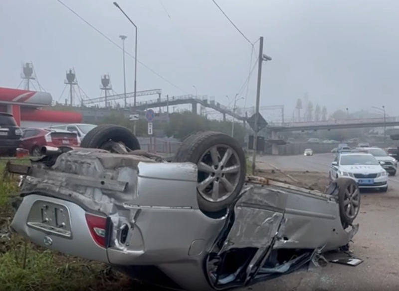В Улан-Удэ «Тойота» влетела в столб и перевернулась