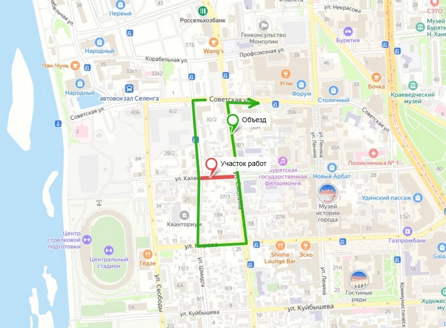 В Улан-Удэ на полтора месяца перекроют участок улицы Каландаришвили