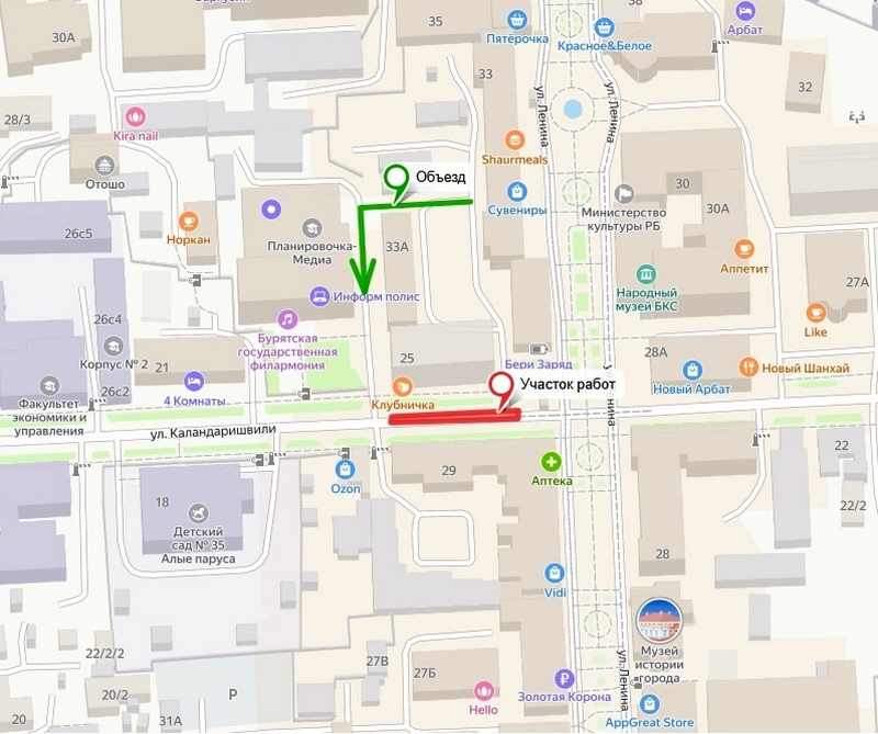 Сквозной проезд по улице Каландаришвили будет сохранён. Однако въезд во дворы домов № 31 и 33 по улице Ленина временно ограничат. Жителям рекомендовано пользоваться объездом со стороны дома № 23 по улице Каландаришвили.