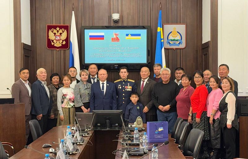 Сегодня в Народном Хурале прошла встреча депутатов во главе с Председателем республиканского парламента Владимиром Павловым с Героем России Тимуром Соктоевым.