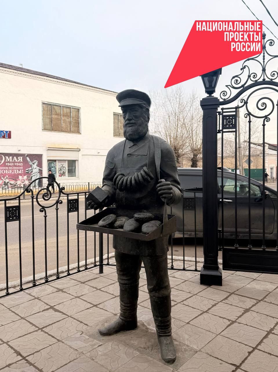А еще не так давно напротив универмага появилась уникальная скульптура Лотошника. Памятник посвящен традиционным уличным торговцам, которые продавали товары на городских ярмарках и площадях. Проект реализован в рамках подготовки к 300-летию Кяхты. И это не все преображения, работа продолжается.