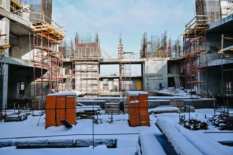 Сейчас на площадке возведён железобетонный каркас будущего комплекса, идут работы на нескольких его уровнях. В новом театре предусмотрены залы на 1000 и 300 мест, здесь разместятся балетные классы, студии, оркестровые и хоровые залы. Завершить строительство планируют в течение этого года.