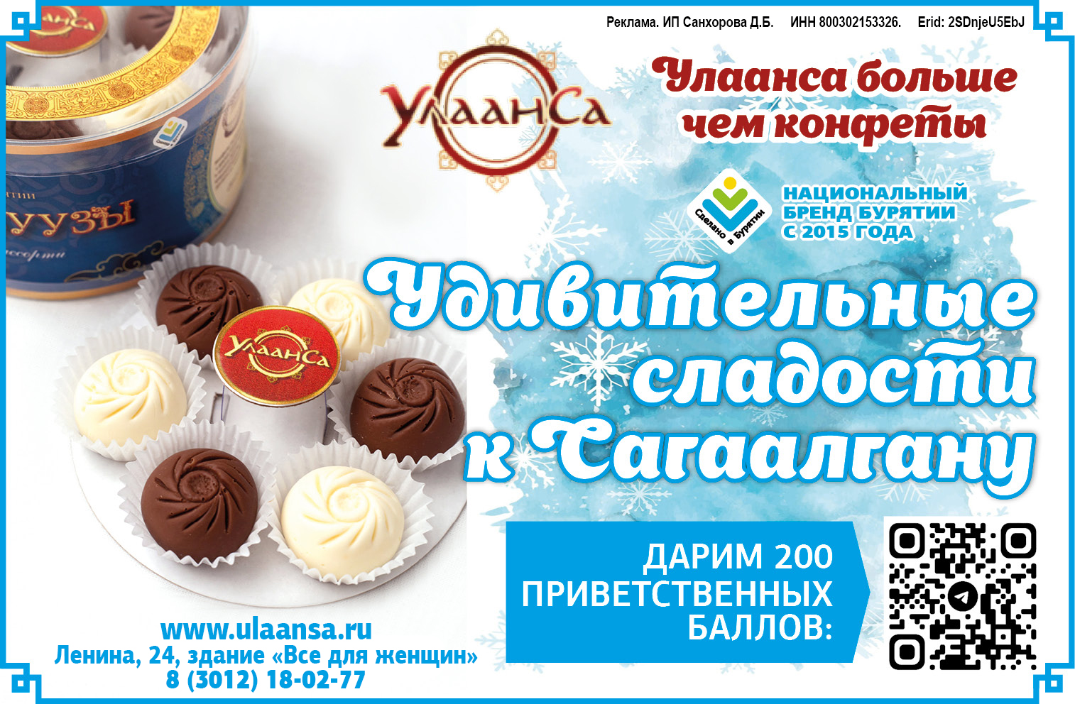 Сегодня по-настоящему удивить можно уникальным подарком с бурятским характером - конфетами ручной работы от шоколадной фабрики «Улаанса»: ставшие уже культовыми шокобуузы - конфеты в виде бууз, а также нефритовый шоколад, леденцы в виде шагайшек, другие этно-конфеты с холисо, чабрецом и даже с перцем.