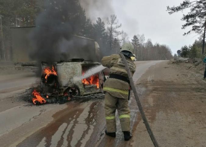 Сегодня днём на трассе Р-258 «Улан-Удэ — Чита» на 517-м километре, за селом Десятниково, в сторону Мухоршибири (перевал Барской), горел автомобиль.