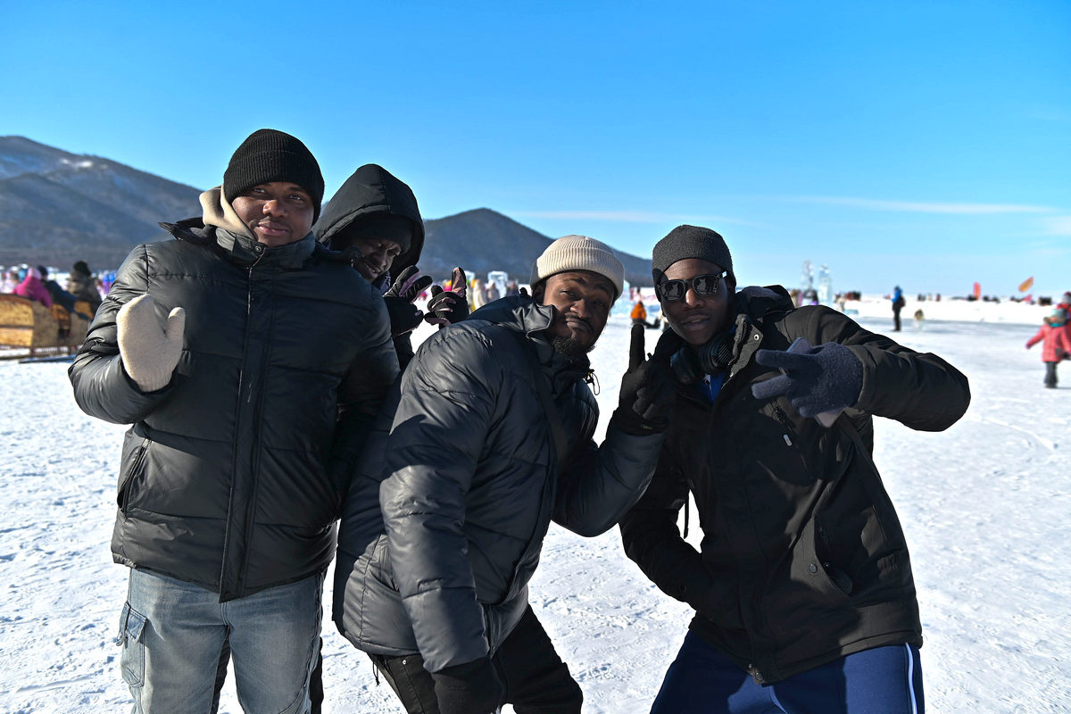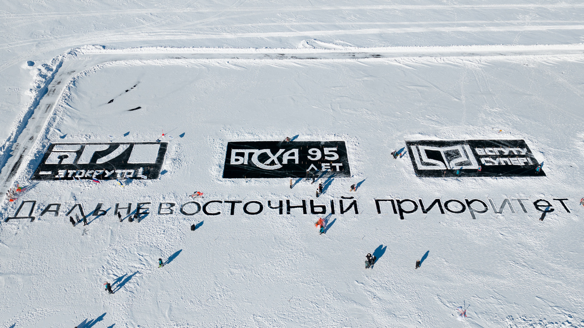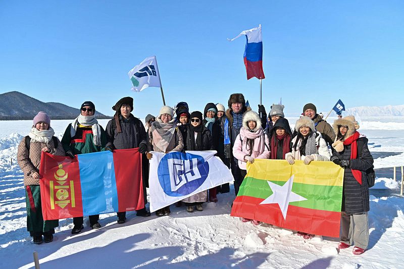 Студенты из Мьянмы нарисовали на льду Байкала снежную композицию. К ним присоединились молодые люди из Монголии и стран Африки. Рисунок создавали с помощью метёл и лопат – организаторы мероприятия подсказывали технику работы на льду.