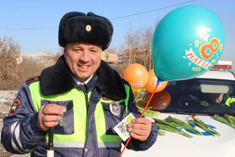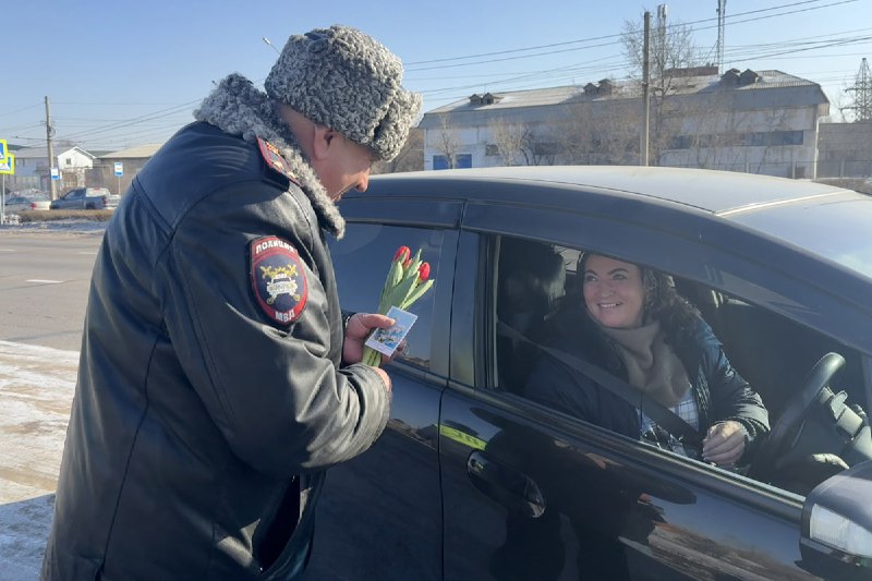 В преддверии международного женского дня в Улан-Удэ прошла праздничная акция, организованная региональной госавтоинспекцией.