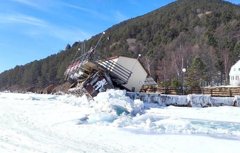 Строение пережило множество мощных штормов, намерзание льда и оттепели. Но вчера одна из подвижек льда просто вывернула основную опору этого причала из грунта вместе с домиком.